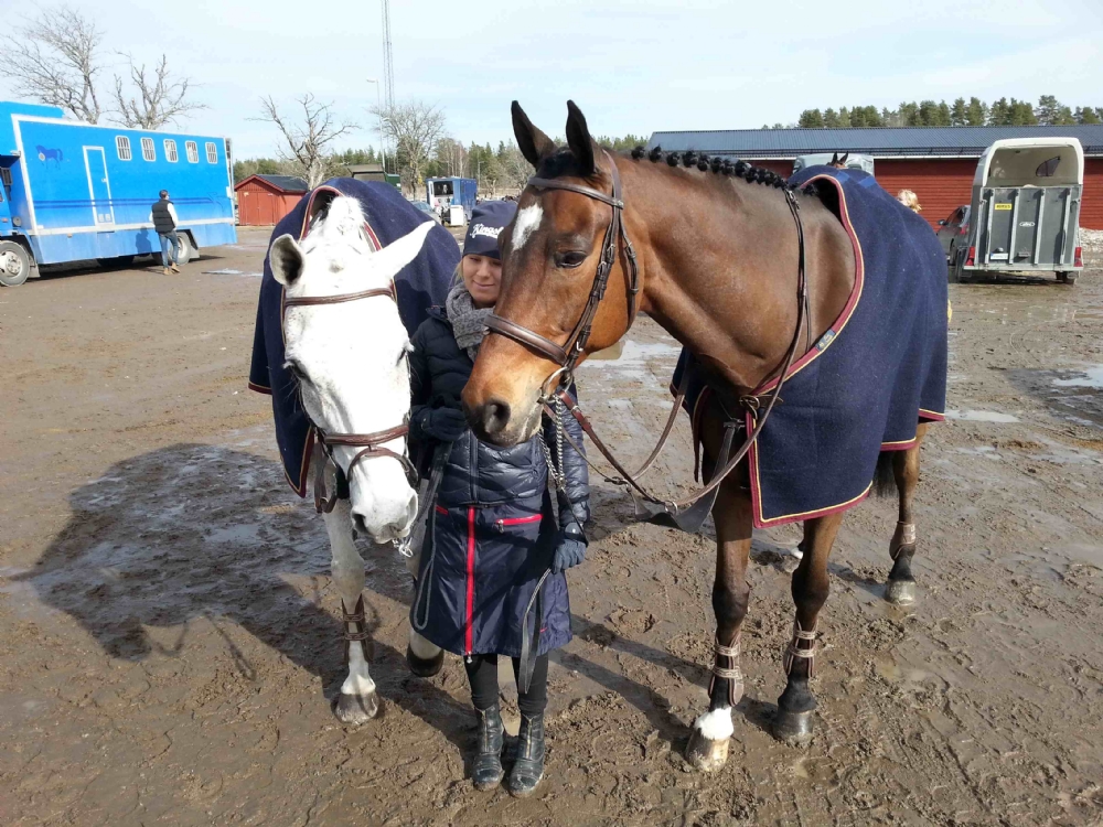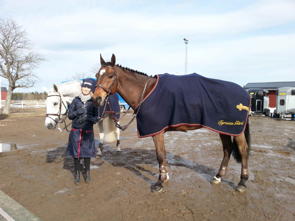Nu har vi fått mössorna med Tyresta Gård loggan, jättesnyggt broderade från Stigsbergs Gård och för att visa lite extra uppskatting till våra trevliga hyresgäster i stallet så har alla fått varsin mössa så klart. I söndags hade vi träning för Anita Sande, med fokus på markarbete. Precis vad vi behövde. Hästarna är nu väldigt pigga och glada och känns i fin form. Q och Exakt var och hoppade en 130-klass härom dagen, med ok resultat.