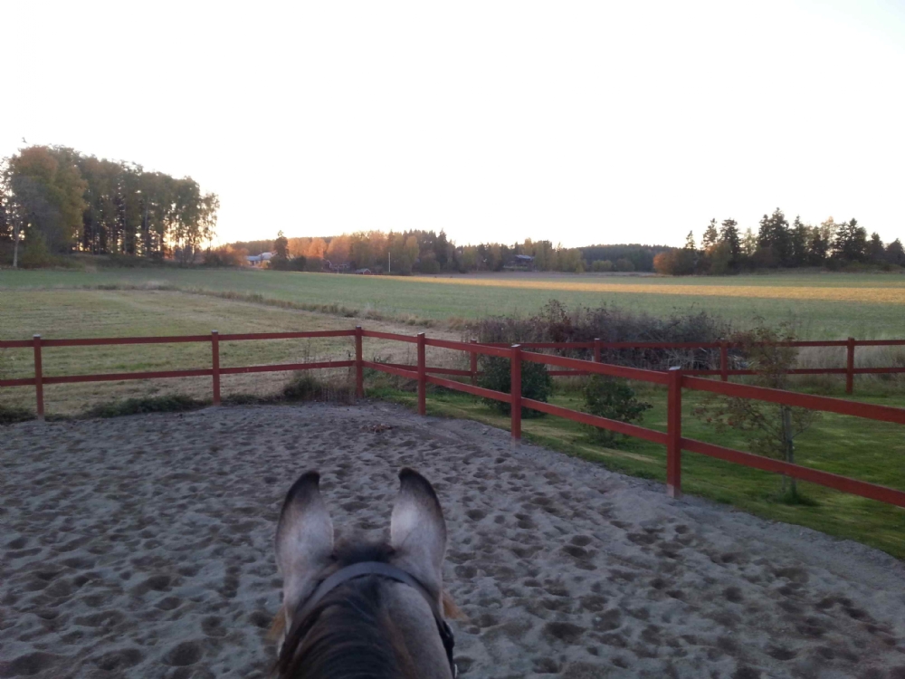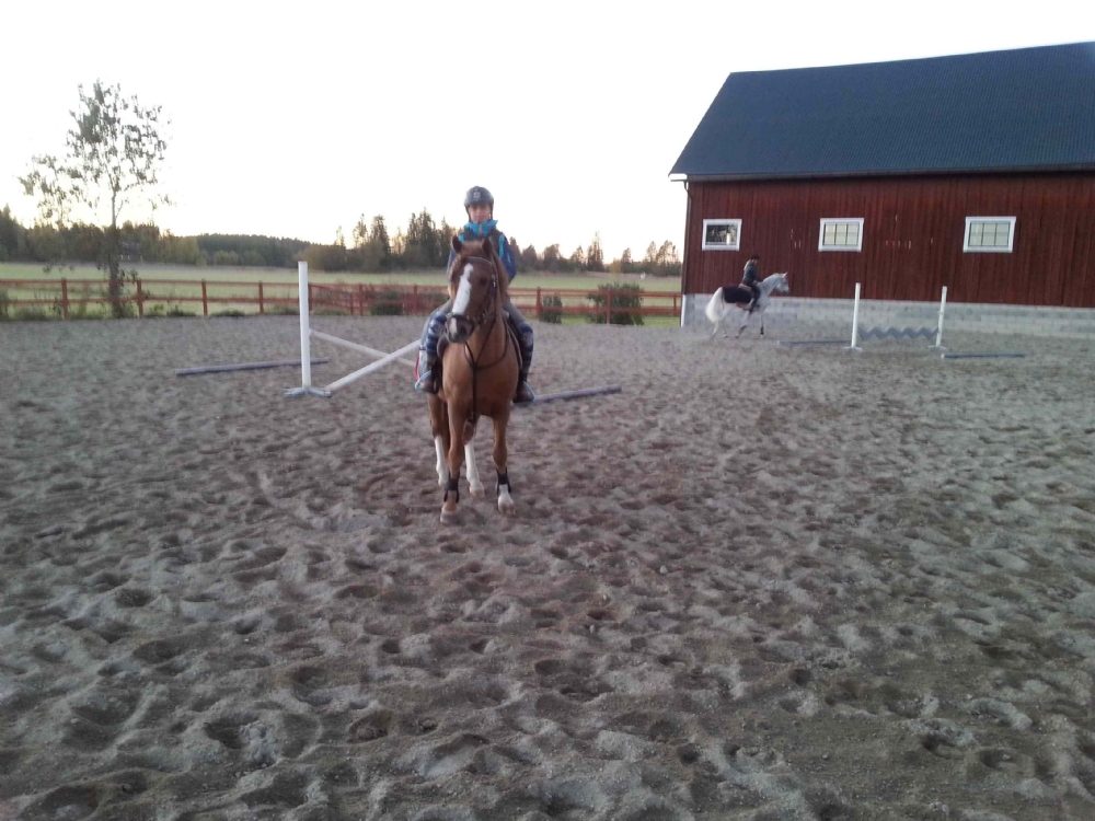 Alla hästarna har fått göra en riktigt bra övning med små hinder för att få igång galoppen i svängarna. Viktigt nu när vi tävlar inomhus. Måns jobbade ordentligt och behövde vila sig sen.
