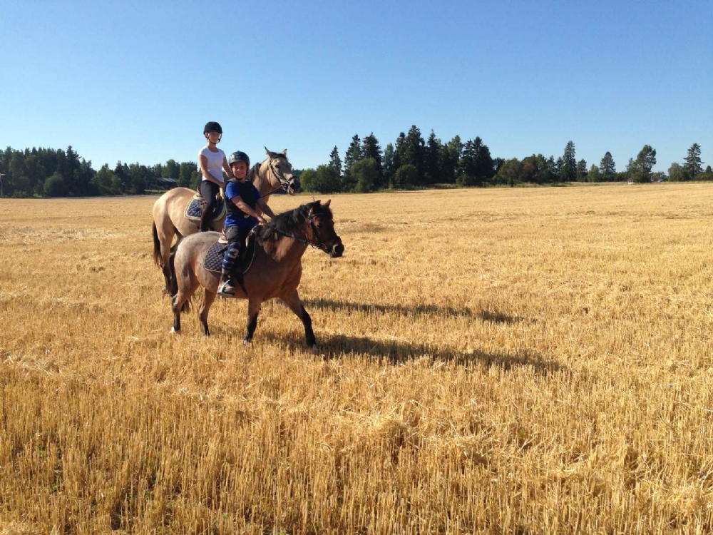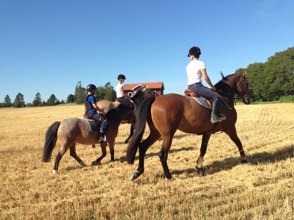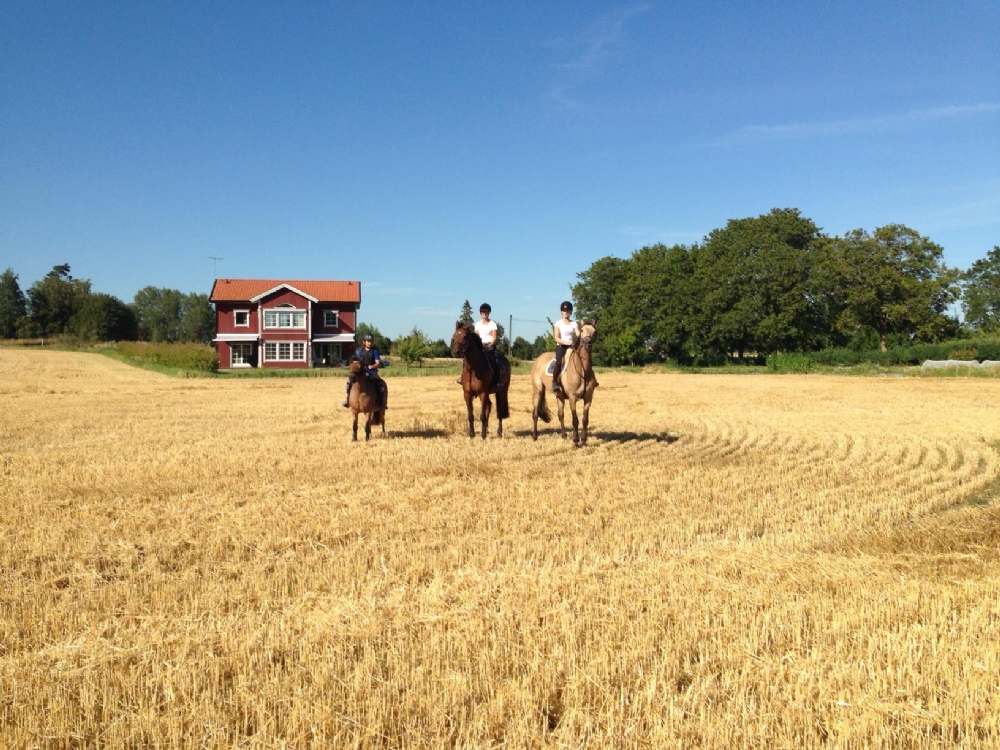Åkrarna är skördade, så nu kan vi äntligen rida på fälten. Det uppskattas av alla! Och så har Tor och Curre varit iväg och tävlat, felfritt i första klassen och 4 fel i andra. Fint presterat!
