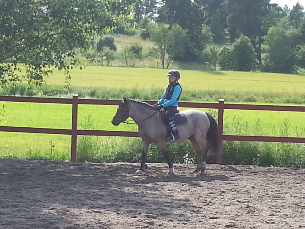 och så har Tuva varit här och ridit Curre. Tor har även prövat att rida Quivi. Hon är möjligen lite stor än, men det gick alldeles utmärkt ändå. I fredags var Tor och Curre och tävlade i Sigtuna.