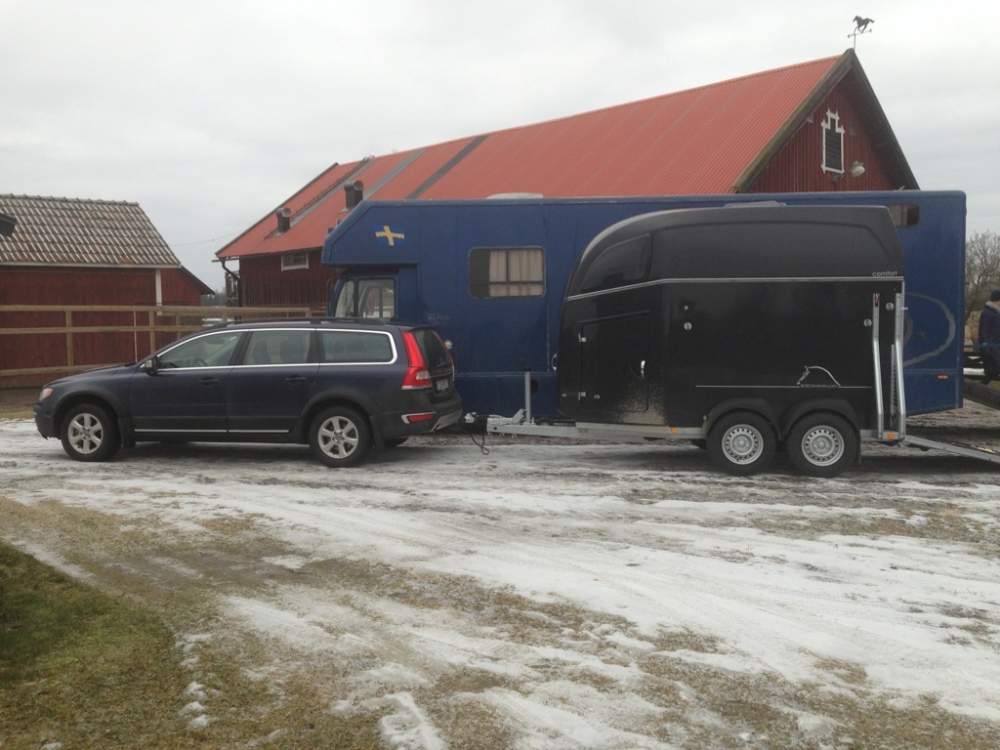 Så nu har vi kunnat rida ute hela veckan och alla djuren njuter i vårsolen. Dessutom har träden har blivit klippta och så har vi fått vår nya fina trailer som invigdes på tävlingen här om veckan. Hästarna hoppade bra på tävlingen, men hade trots det något nerslag. Bäst var Chimay som var felfri och kom 3a i 130. Bara att jobba vidare!