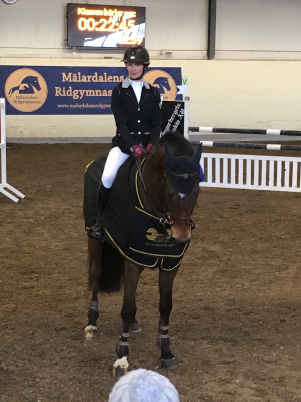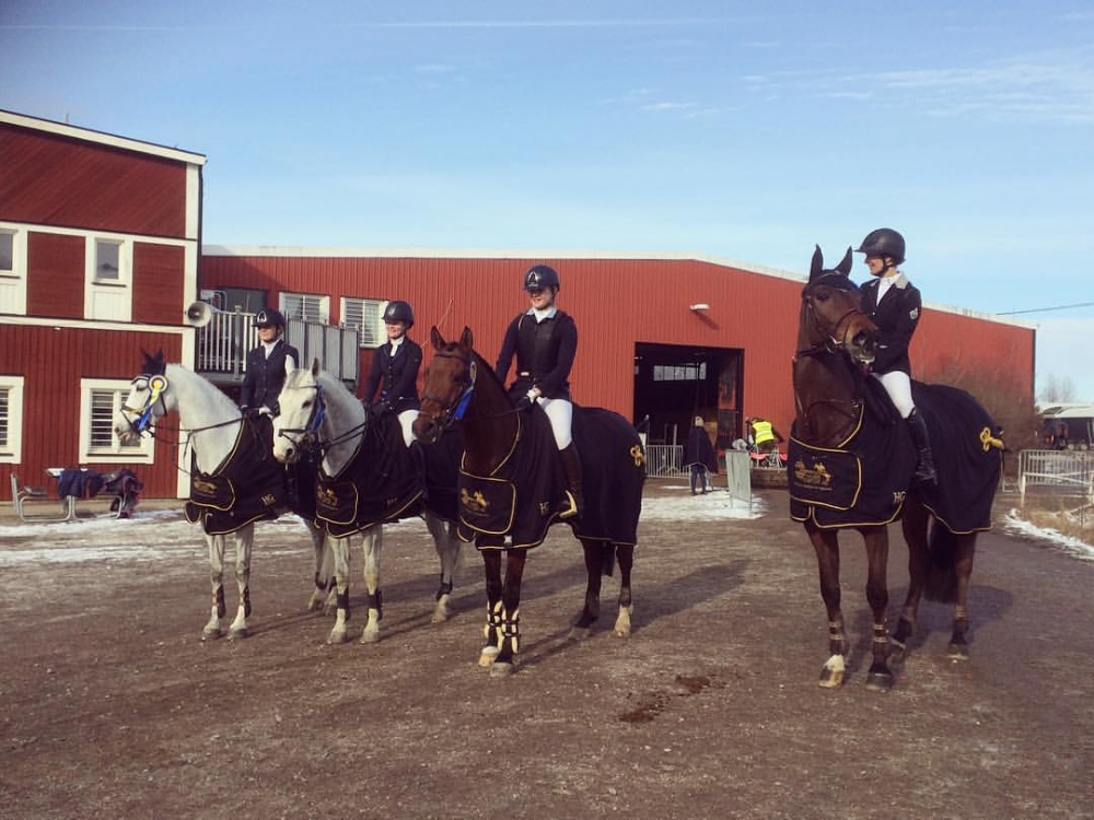 I Hamre i söndags reds premiäromgången av div 1 östra gruppen, där ERK vann utan att ens behöva rida omhoppning eftersom inga andra lag slutade på noll fel. Så kul! I laget red Ninn Blomqvist, Gabriella Ivedal, Linn Leneklint och Karin Fromell som red sist med Quaregnon. Q var i lördagens 130 klass var alldeles för stark, men efter support från Anita och lite upp-betsling gjorde han en väldigt noggrann och felfri runda i lagklassen. Härligt. Även Exakt var felfri i sin klass och Brownie, som var lite i överkant peppad, gjorde en helt ok klass han med. Han kommer bli riktigt fin med lite tid tror vi.