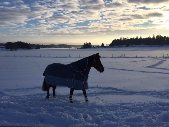 Även om vintern egentligen inte är någon favorit, så är det faktiskt härligt med snö ibland. Vi passade på att rida ute och trimma i snödrivorna, man vet ju aldrig hur länge snön blir kvar. Hästarna i hagen såg också ut att ha det riktigt skönt i snön.