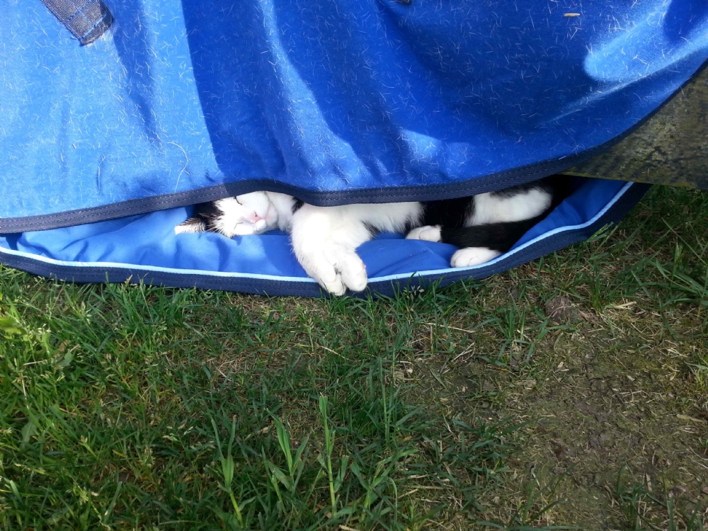På Nationaldagen var Tor och Måns i Sundby RK och tävlade. Felfritt med placering i båda klasserna. Jätteduktiga! Framgångar ger mersmak, så Tor passade även på att prata ihop sig med Quivi när hon låg och vilade. Bäst att göra en plan med flera hästar. Lucy jagar frenetiskt möss och sparvar medan katten Dora tar igen sig i ett nytvättat täcke. Hm, ingen ordning på katten, tur att hunden jobbar i alla fall!
