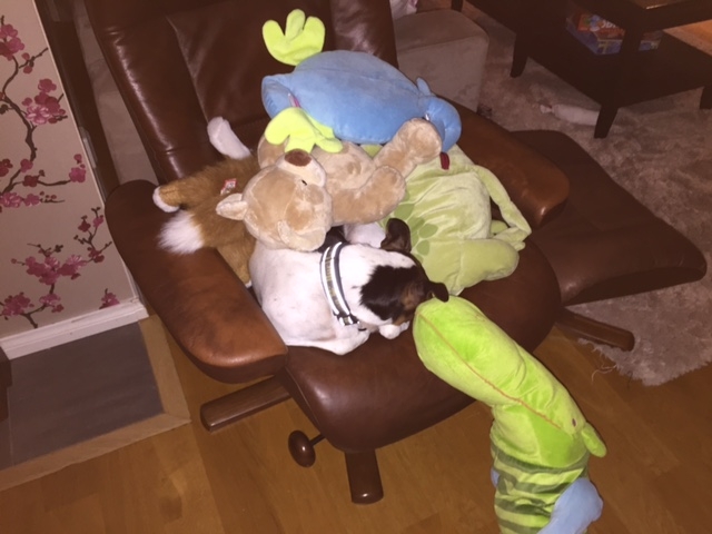 Inte så långt kvar till årets första tävlingar, så nu ökar vi på träningen lite till och har även lagt till några banhoppningsträningar. Tor har varit och tränat för Pontus Westergren igen och nästa vecka kommer Anita Sande. Hästarna känns riktigt fina, så det ska bli väldigt kul att komma igång igen. I övrigt har Exakt fått ny frisyr, Q var glad att han slapp och Brownie vilar upp sig. Avslutar med ett svårt quiz: Hitta hunden (inte den i plysch!).